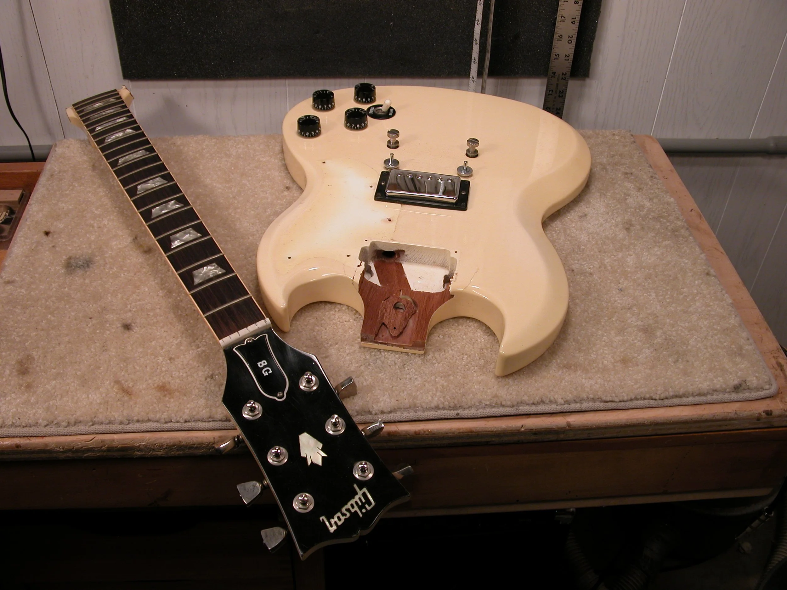 These guitars were brought to Dave by a gentleman who lived in New Orleans and went through Hurricane Katrina. He had to leave his house to avoid the hurricane and leave all his instruments behind. When he returned, he realized they were floating in the harsh waters inside the house! It took him 5 years to muster up the courage to bring them in to Dave’s shop. They were very, very difficult restorations, some of the hardest in Dave’s career! Have a look at these incredible complete restorations.